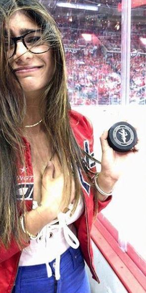 美國25歲的前色情片女星卡莉法(Mia Khalifa),曾有「世界第一AV女優」之稱,後來轉職做體育主持。日前,她觀看冰上曲棍球賽事時,不幸被冰球擊中左胸,令其「隆過」的左邊乳房植入物破裂,她已計劃明年胸部再動手術。不過,她未有視這次意外為噩夢,更把「凶器」冰球帶回家做紀念。