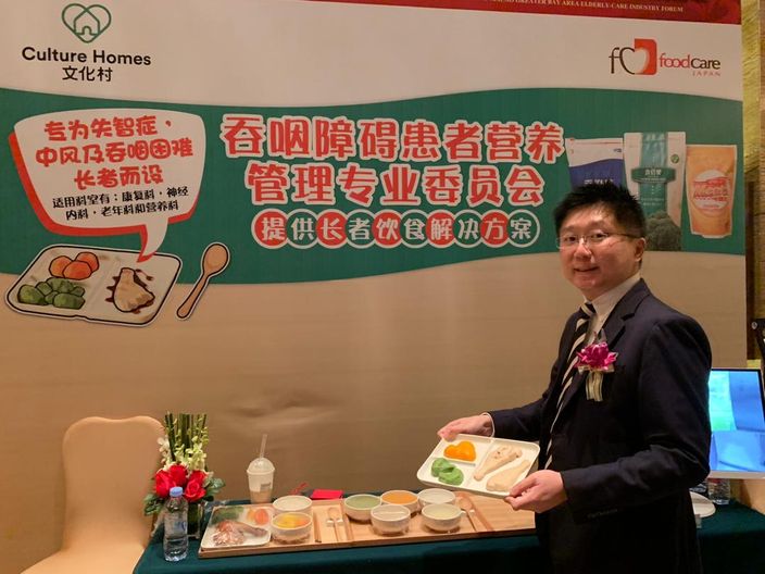 一月中旬,我受邀到廣東省養老服務協會在廣州舉辦的「第四屆廣東省養老服務高峰論壇暨第二屆粵港澳大灣區養老產業實戰論壇」,擔任演講嘉賓。在大會的展示區,香港文化村展示了一款「食倍樂」軟餐。據工作人員介紹,該款產品從日本引進,有詳細的食譜。只需將食倍樂混入「糊仔」中,就可令食物變得有質感,然後放入擬真的食物模具,雞肶、青菜都能做出來。目前,該產品主要透過管道銷售,應用於香港文化村的專業護理安老院,以及內地部分養老院。