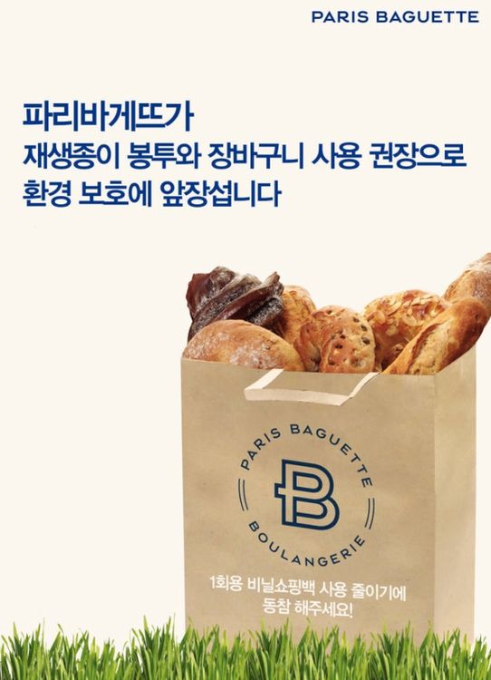 大型連鎖麵包店Paris Baguette 已貼出告示,表明店舖只會提供紙袋。