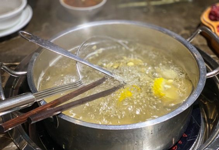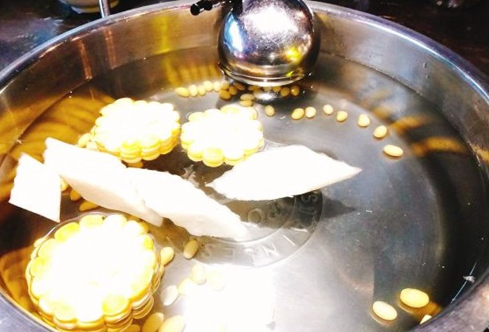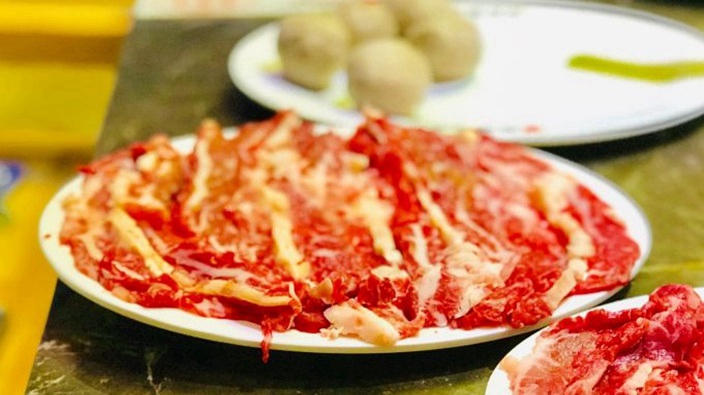 這家的火鍋也超級有特色,是礦泉水鍋底,服務員當著顧客的面打開農夫山泉把礦泉水倒入鍋裡。礦泉水鍋底能將牛肉最原始鮮甜的味道更襯托出來,不被別的味道所破壞掉。