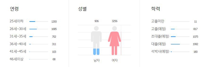 10日過去,到底有多少人報名呢?截至21日凌晨,KONNECT的11個不同部門的職位已經吸引了7747位求職者報名應聘!其中以「經營支援(事務)」一職的應聘率最高,而要求具備專門技能的「內容流通」和負責音源製作的「A&R」則較少人應聘。另外應徵者當中有307人擁有碩士、博士等高學歷,似乎是另類的評價了姜丹尼爾新公司的發展潛力。而不出意料的是,女性的求職者佔了80%,果然大家都逃不出姜丹尼爾的魅力!