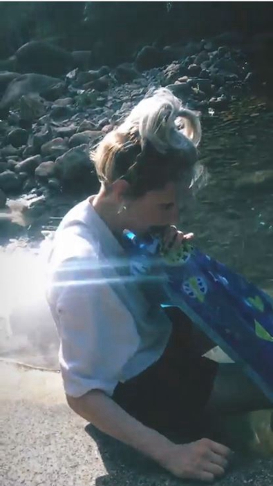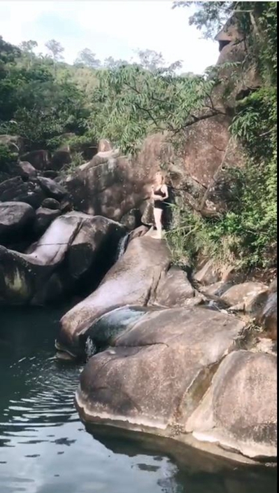 卓林在IG貼上幾條短片。從相關短片可見,二人換上情侶裝運動top bra戲水,又自備吹氣浮床,Andi更站在高處的石頭向鏡頭揮手。