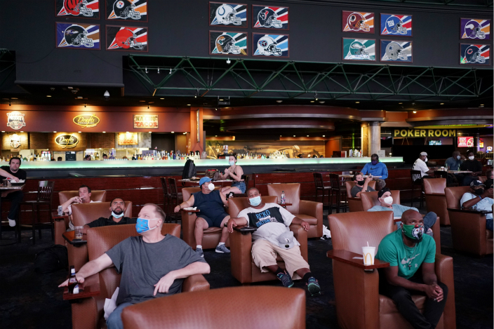 球迷聚集在拉斯維加斯電視睇波加賭博。 AP圖片